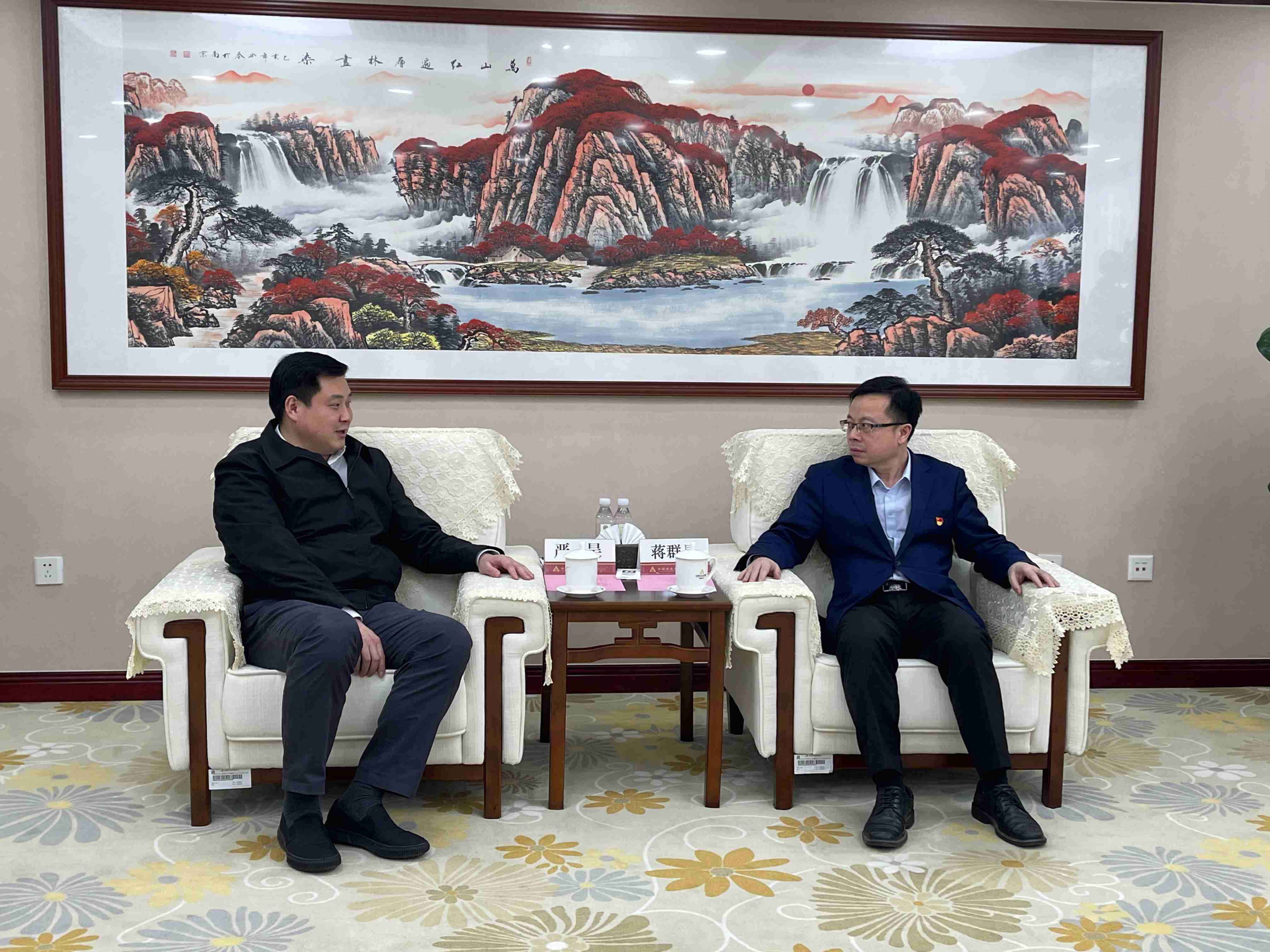 3月30日,严昊主席在乌鲁木齐同中国农村发展银行新疆分行党委书记、行长蒋群星会谈,双方畅叙合作情谊、共启合作新篇。