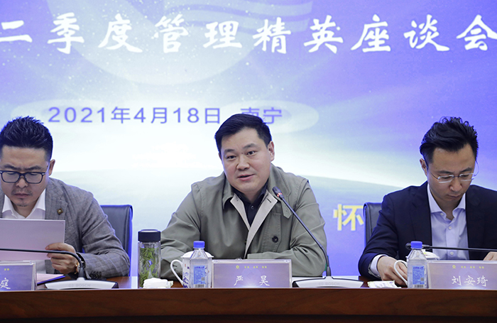 2021年二季度管理精英座谈会议在广西南宁召开。严昊主席出席会议作战略指导和工作部署,鱼虾蟹