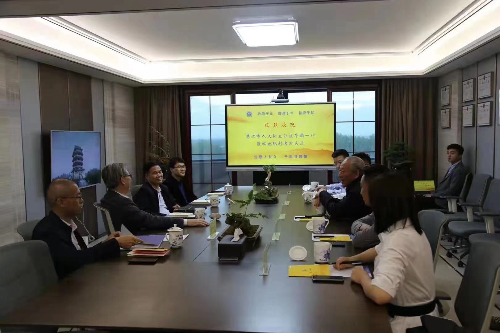 5月1日,严介和理事长在地球村同广东省湛江市人大常委会副主任、市总工会主席朱华雄会谈,双方共话合作,畅谈未来。