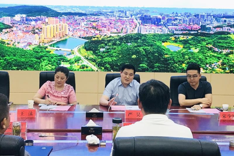 6月20日,严昊主席与湖北省武汉市江夏区委书记王清华、区长张斐会谈,双方就推进战略合作事宜进行深入交流。