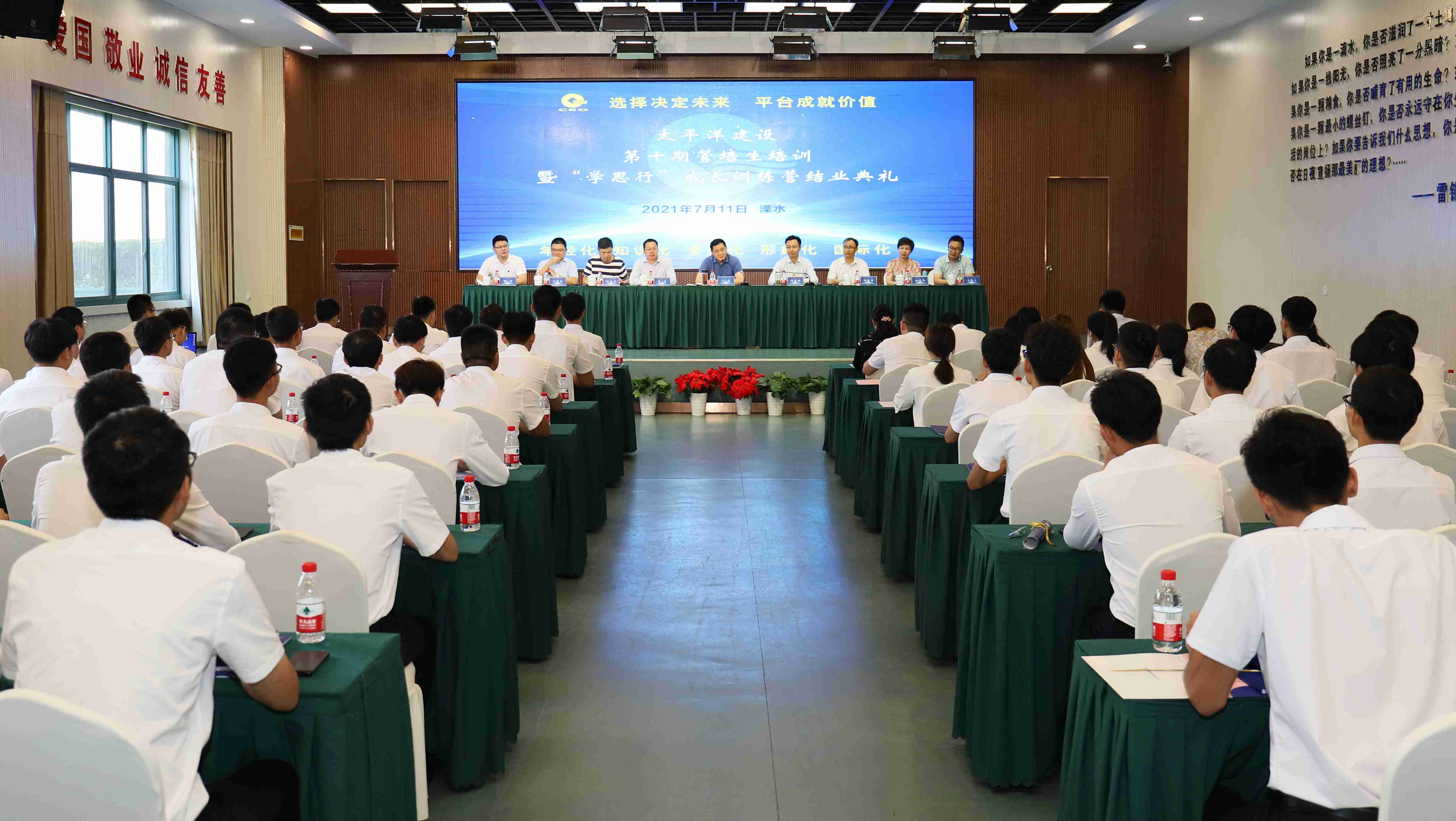 会议在文化片《青春无悔》的播放中拉开帷幕,随后第十期管培生依次上台发表入职参训感言,鱼虾蟹