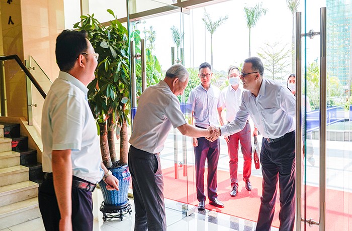 8月19日上午,严介和理事长应邀前往江门市人民政府,同江门市委副书记、市长吴晓晖会谈。双方就江门市基础设施建设进行深入交流,并共进温馨午宴。