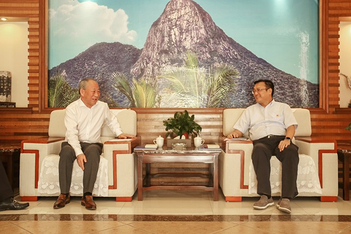 11月2日下午,严介和理事长应邀同海南省乐东县委书记孙世文,县委副书记、县长黄文聪会谈,双方就乐东县基础设施投资与建设进行深入交流。庄严建设董事局主席金亮陪同。