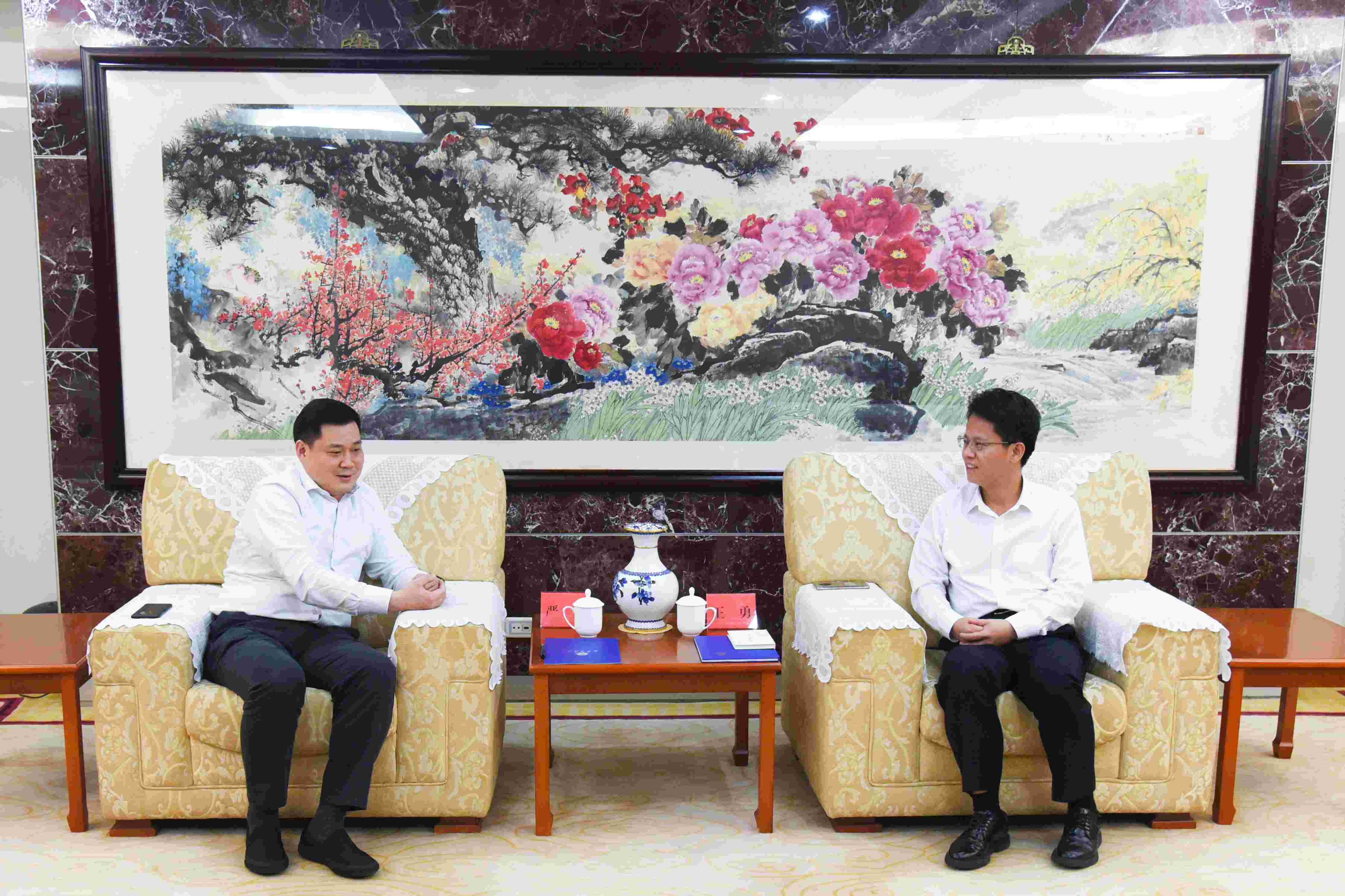董事局主席严昊与广东佛山市南海区委副书记、代区长王勇会谈,双方就推动基础设施等领域合作展开交流。