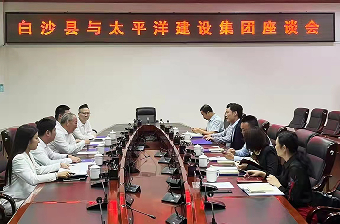 白沙县委常委、县政府副县长候选人邢展,县政府副县长刘磊,县委办主任符爱芳,县发改委主任薛开璧,县旅文局局长孙冰;庄严景旅白沙项目负责人陆虎、白沙项目总工尹偲帆、庄严景旅经营中心副总经理张诗雪等参与会谈。(文/图 庄严建设文品中心)
