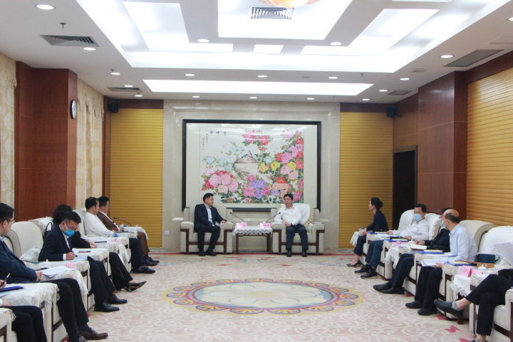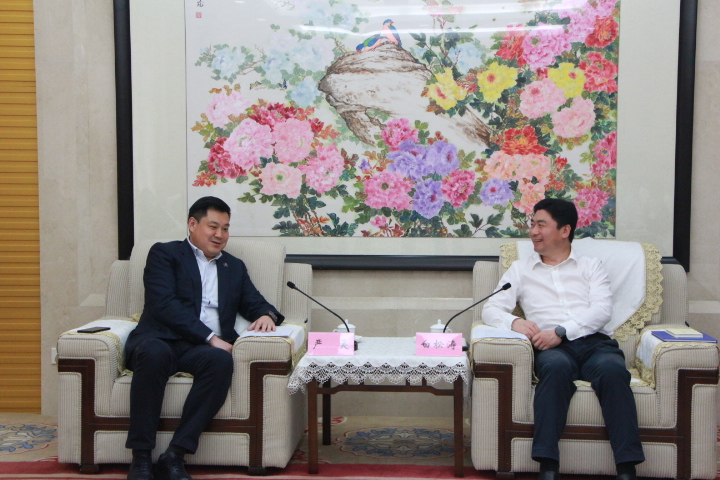 3月16日,严昊主席与广西壮族自治区玉林市市长白松涛会谈,双方就进一步深化合作展开交流。玉林市副市长王巍出席会谈。