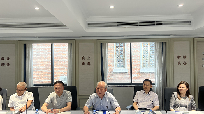 6月7日,严介和理事长在太系广州机关同广州市越秀区委常委、统战部部长赵虎会谈。双方就集团的鱼虾蟹和越秀的老城改造等进行了广泛交流和探讨。