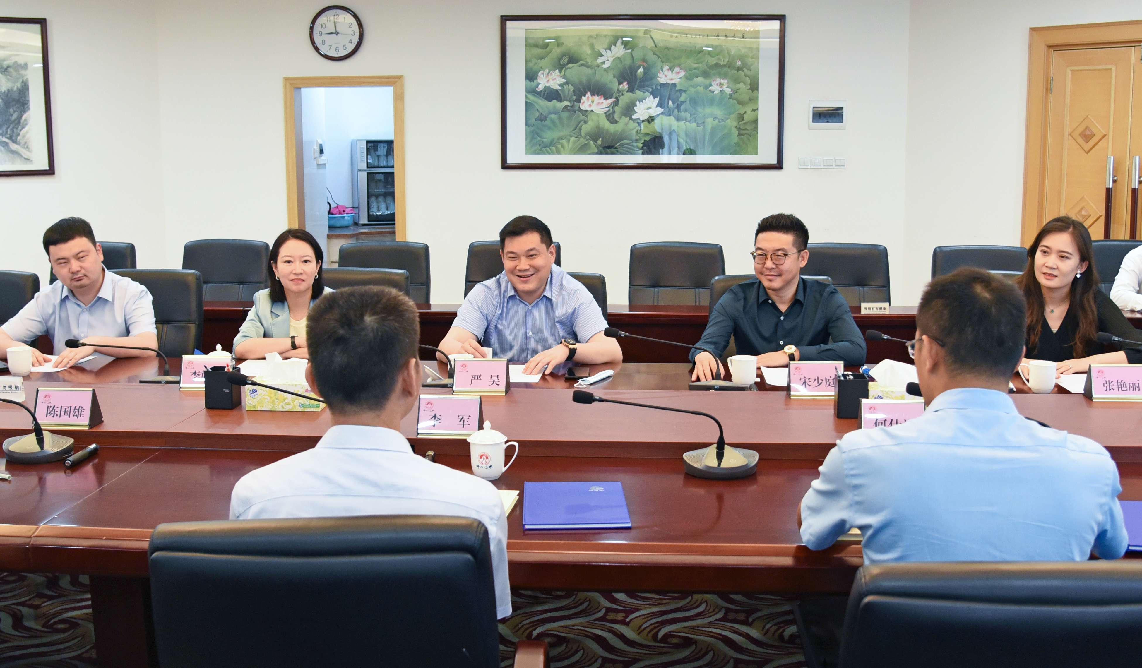 6月30日上午,严昊主席同广东省佛山市三水区委书记、区长李军会谈,双方就加强政企沟通,实现多方共赢进行深入交流。