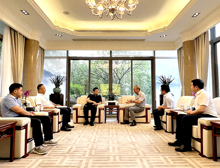 庄严系云飞建设董事局主席严云飞,太平洋系大区总裁、粤商建设集团董事局主席张翔,庄严系高级副总裁、广东市场指挥长马力,庄严系副总裁、广东市场负责人李佳杏,庄严系云飞建设董事、CEO宋丹阳等参加会谈。(文/图 云飞建设文品中心)